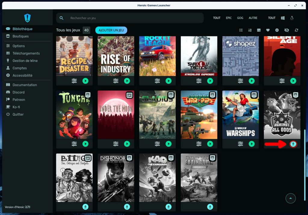 Pour commencer, démarrez l’Heroic Games Launcher. Pensez à récupérer Against All Odds tant qu’il est disponible et offert surtout via votre navigateur habituel ou en passant par Heroic.