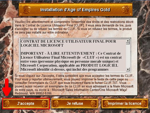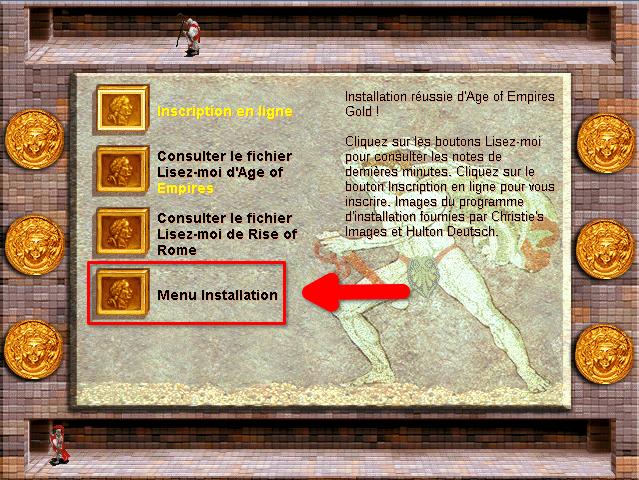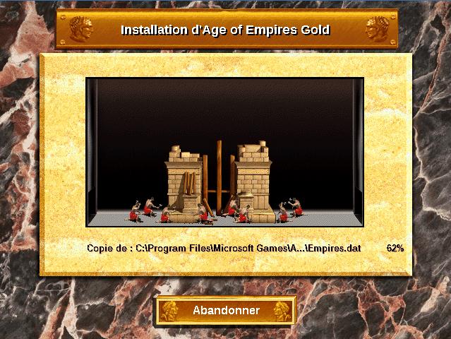 Pour commencer, insérer le disque du jeu de base « Age of Empires » dans votre lecteur CD ou monter votre image disque. Dans le cas d’une image disque, vous pouvez aussi l’extraire comme une archive.