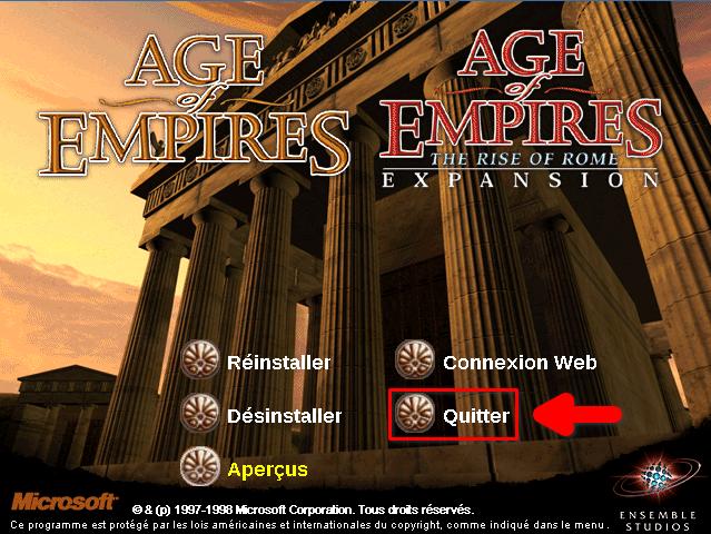 Voila, dorénavant le jeu « Age of Empires » est installé sur votre ordinateur et parfaitement fonctionnel… ce qui ne sera pas le cas de l’extension car il faut ajouter quelque chose pour le rendre fonctionnel.