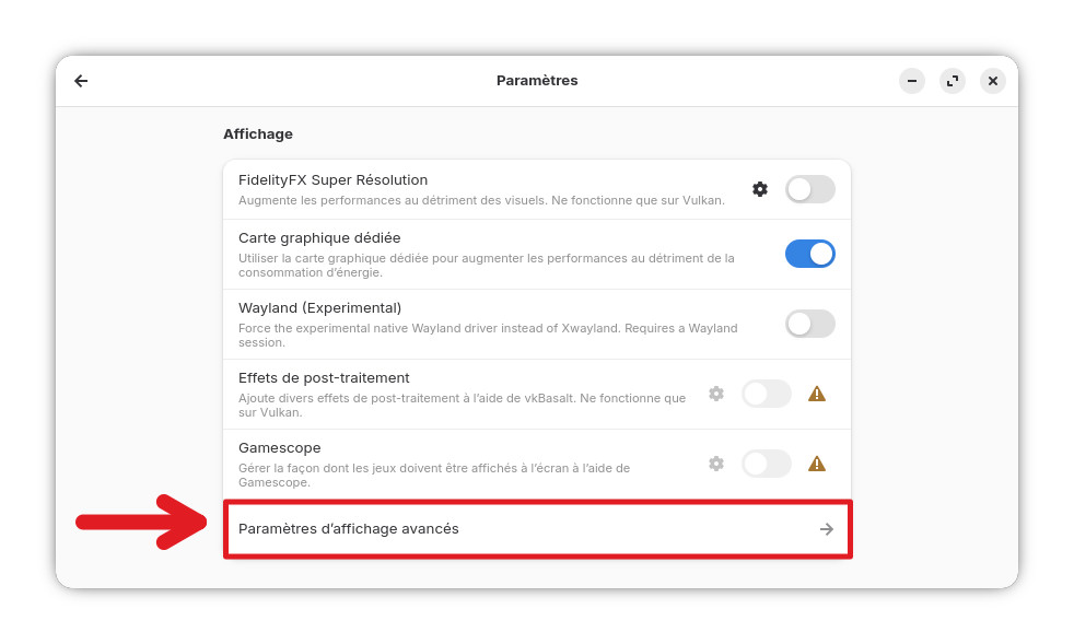 De retour dans les paramètres, rendez-vous dans « Paramètres d’affichage avancés« .