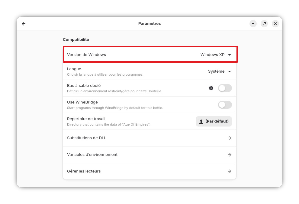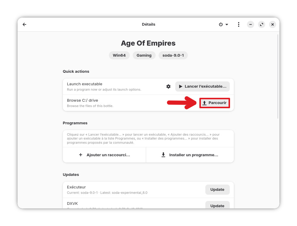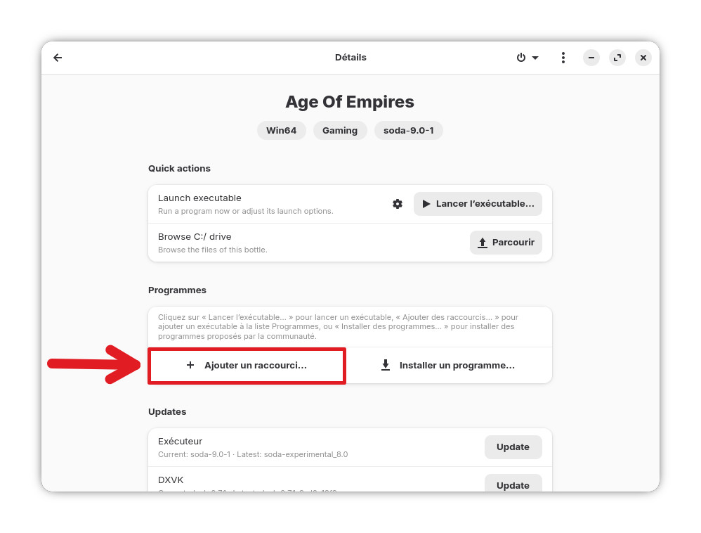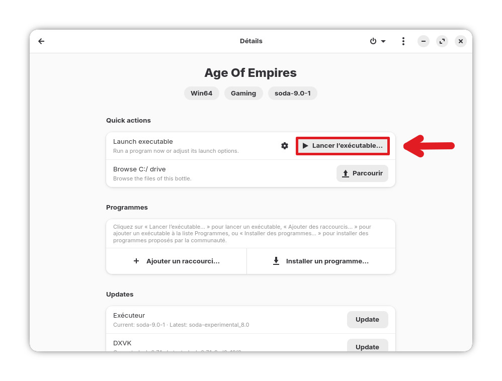 Le jeu sera ainsi directement accessible et lançable depuis Bottles.