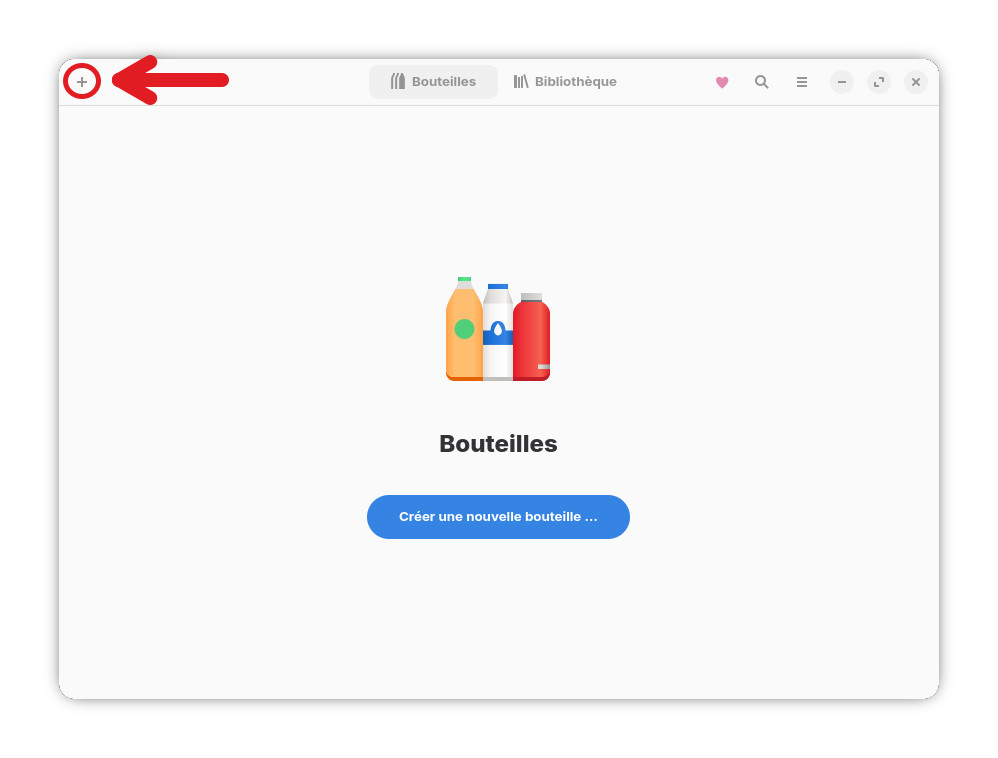 Lancez Bottles, cliquez sur l’onglet « Bouteilles » puis cliquez sur le + dans le coin gauche de la fenêtre.