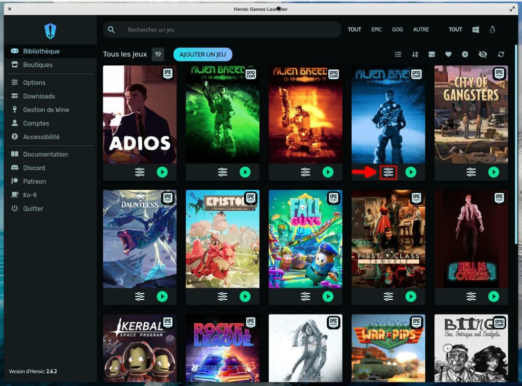Pour ce faire, cliquez sur le bouton de réglage sur la fiche du jeu.
