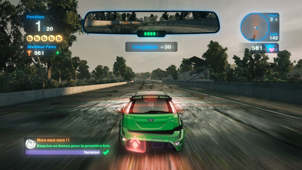 Cette semaine, nous partons sur les chapeaux de roues avec notre premier jeu de course: Blur. Orienté arcade, cette production développé par le studio « Bizarre Creations » est un mélange entre les licences Burnout et Mario Kart. Pour la faire courte, votre objectif est de réaliser des courses en terminant premier (normal j’ai envie de vous dire) et en obtenant des feux et des points de fans. Comment me dirait vous ? Tout simplement en réalisant des défis durant la course et en éclatant vos adversaires. Et il est là, le coté Mario Kart: vous allez pouvoir récupérer et stocker des bonus offensif et défensif au nombre de 3 pour vous garantir la meilleur place sur le podium.