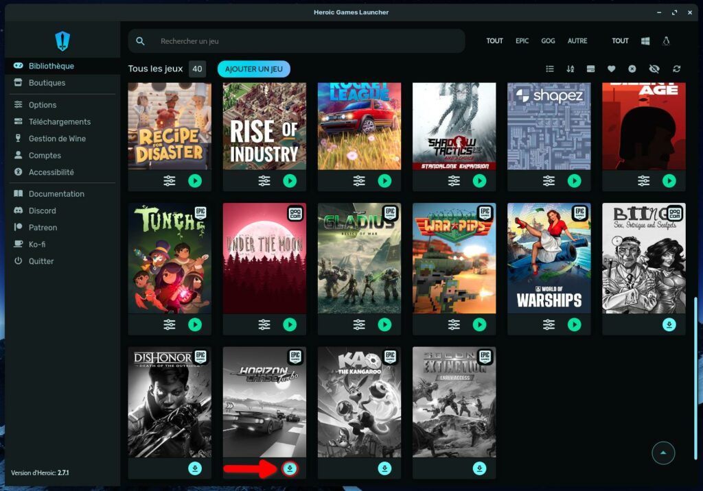 Pour commencer, démarrez l’Heroic Games Launcher. Pensez à récupérer le jeu tant qu’il est disponible et offert surtout via votre navigateur habituel ou en passant par Heroic.