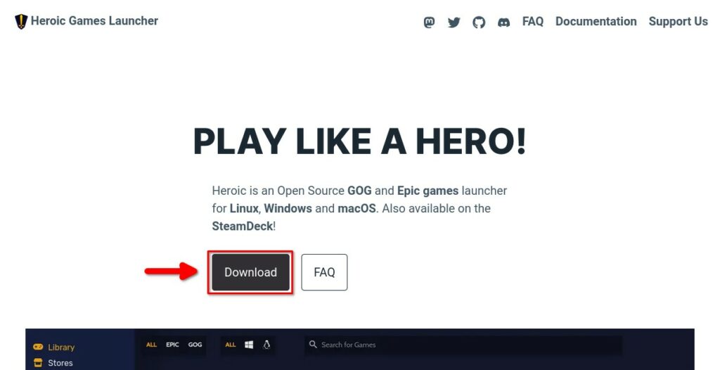 Pour commencer, rendez-vous sur le site officiel de Heroic Games Launcher: https://heroicgameslauncher.com. Encore une fois, le site est en anglais mais grâce à ce tutoriel illustré, vous aller pouvoir faire abstraction de la langue.