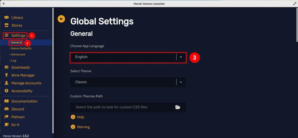 Pour cela, lancez le logiciel Heroic fraîchement installé et rendez-vous dans les réglages dans le menu à gauche (« Settings » en anglais ») puis sur « General ». Dans la liste « Choose App Language », sélectionnez « Français ». Le programme se traduira immédiatement.