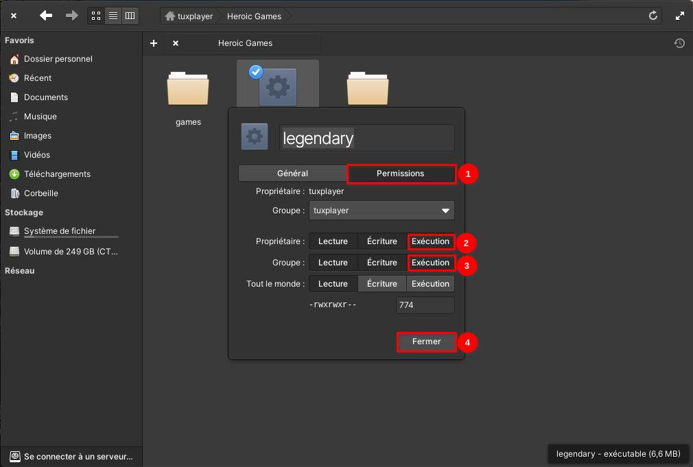Sur la page suivante, dans le premier post (indiqué par la mention « Latest »), télécharger le fichier « legendary » sans extension et placez le dans un dossier « Games » qui devra se situer dans votre dossier personnel (/home/ »Nom d’utilisateur »/Games).