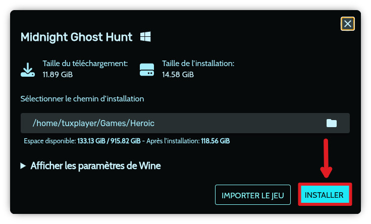Une fenêtre s’affiche pour vous demander où et comment installer le jeu.
