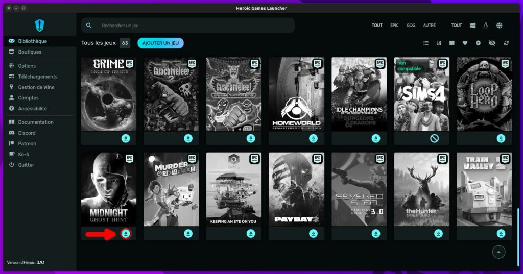 Pour commencer, démarrez l’Heroic Games Launcher. Pensez à récupérer le jeu tant qu’il est disponible et offert surtout via votre navigateur habituel ou en passant par Heroic.