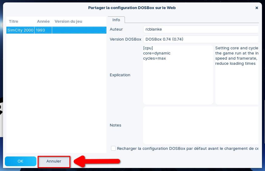 Ensuite, DBGL vous renverra le résultat pour « SimCity 2000 ». Cliquez sur le bouton « Annuler« .