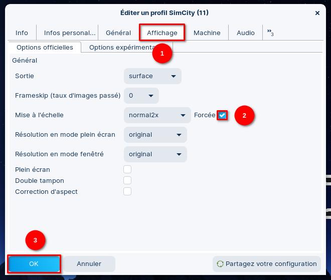 Dans la configuration du profil, cliquez sur l’onglet « Affichage » puis cochez la case « Forcée » et cliquez enfin sur « OK« .