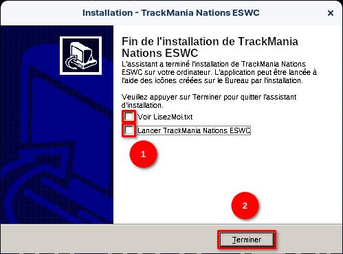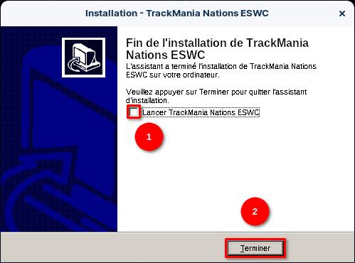 Décochez la case « Lancer TrackMania Nations ESWC » et cliquez sur « Terminer« .