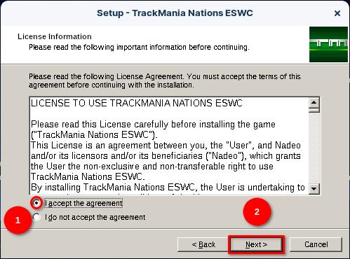 Après ne pas avoir lu la licence d’utilisation du jeu, acceptez-les en cochant la case « I accept the agreement » puis cliquez sur « Next >« .