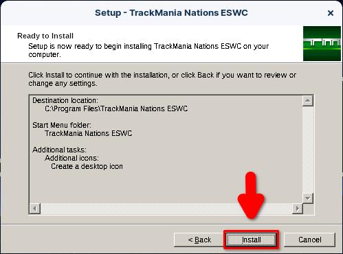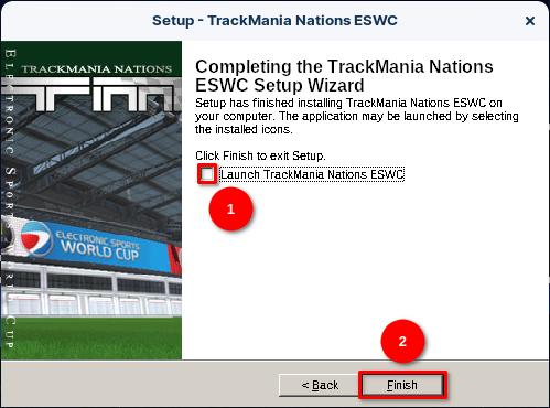 Nous arrivons au bout du programme d’installation initial du jeu. Décochez la case « Launch TrackMania Nations ESWC » puis cliquez sur « Finish« .